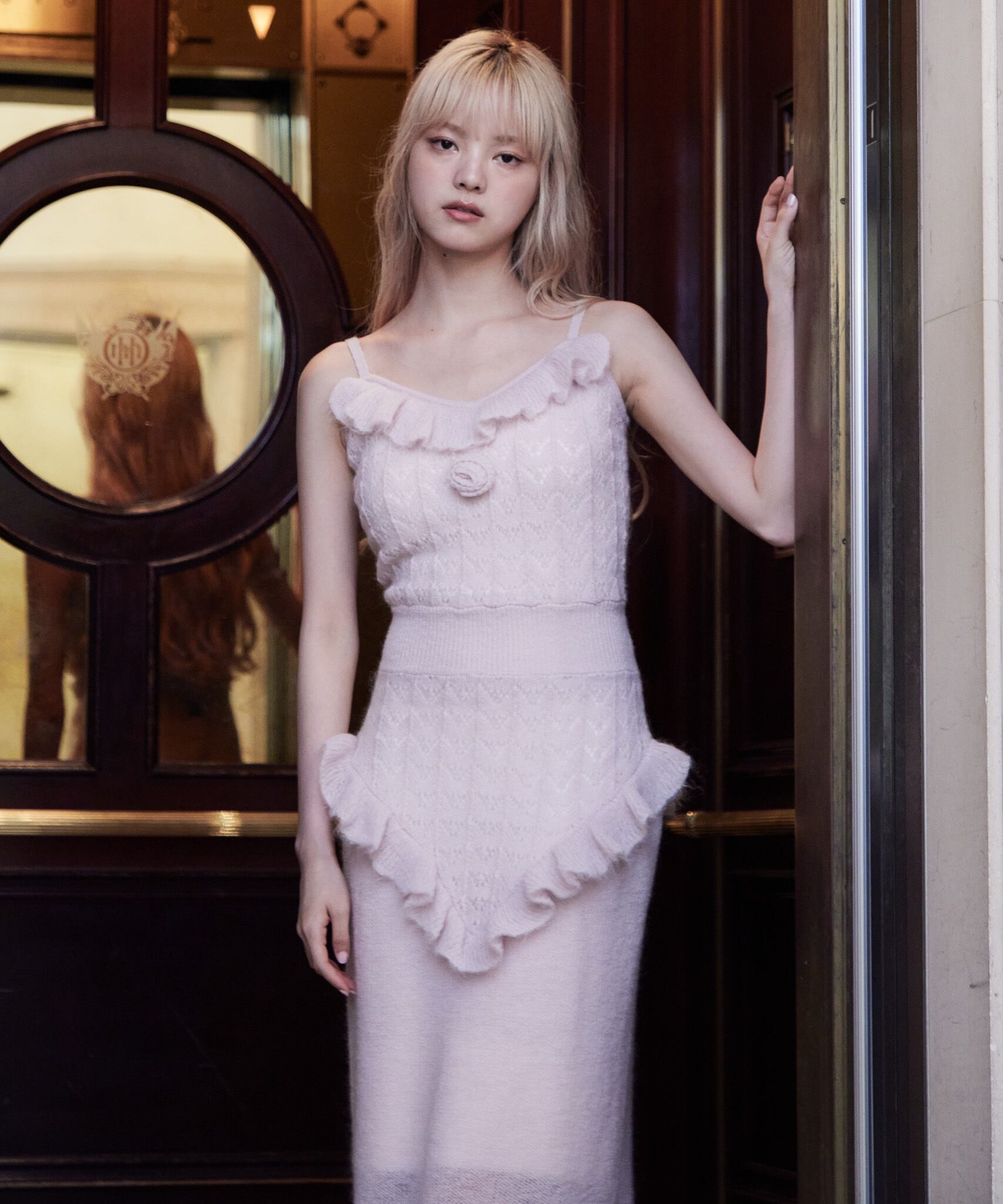 かぎ編みがノスタルジックなモヘアのニットワンピース。