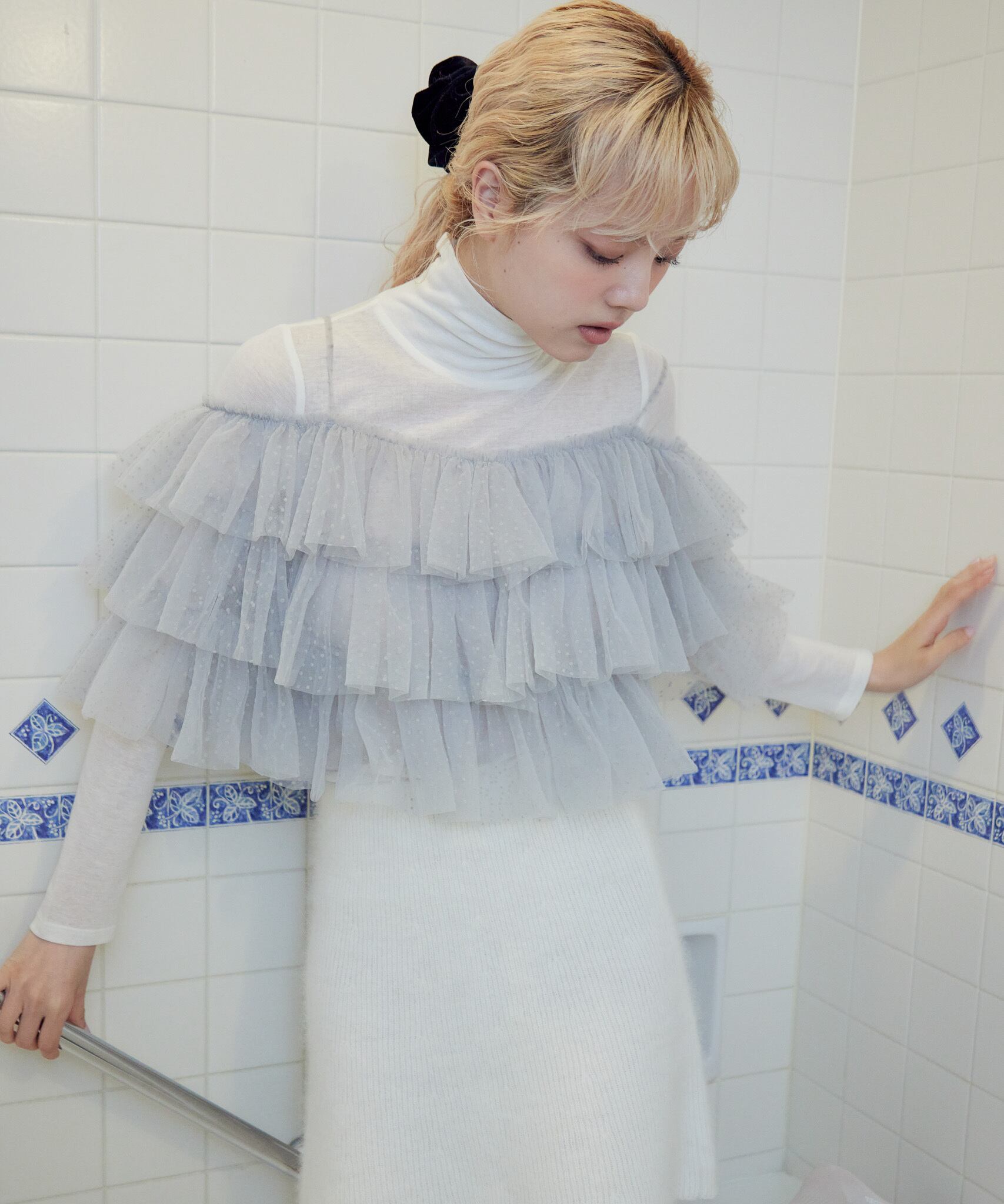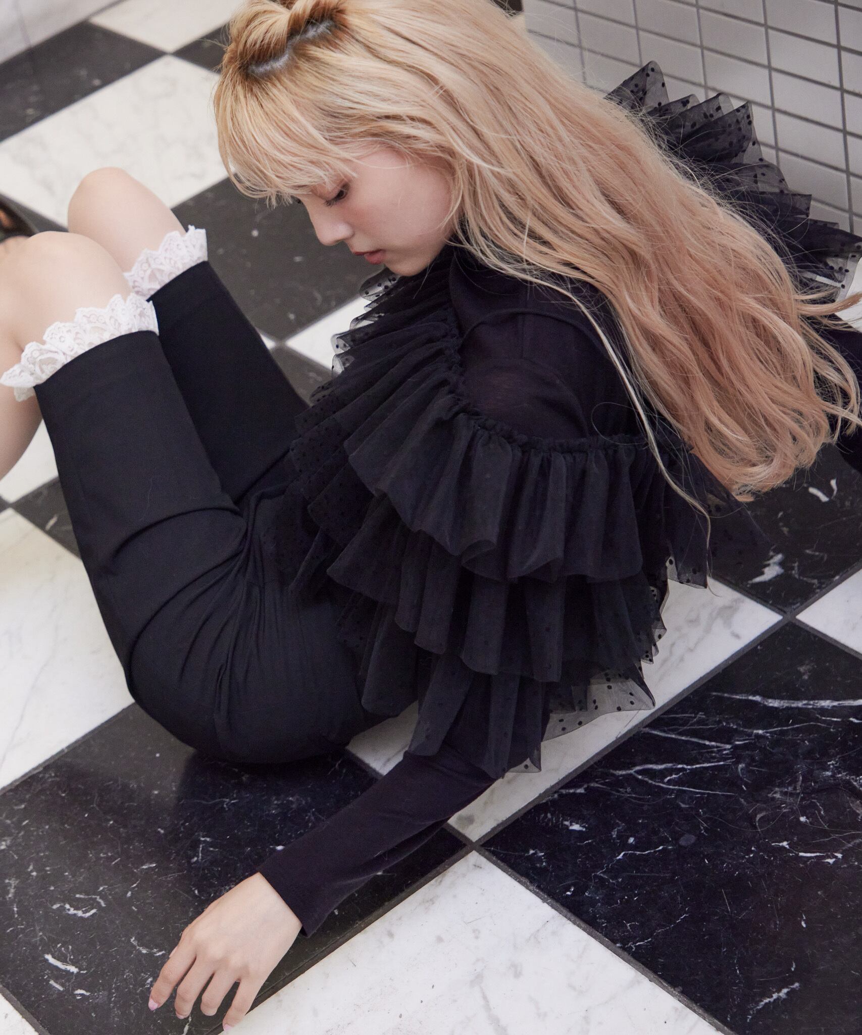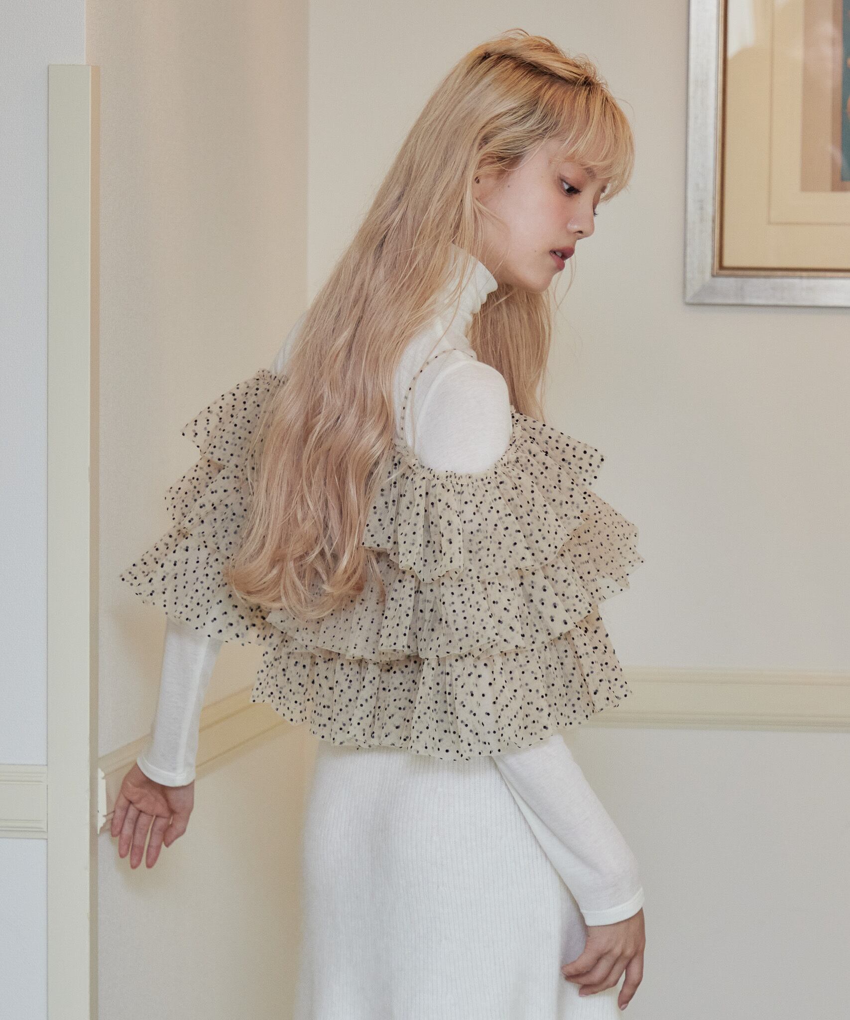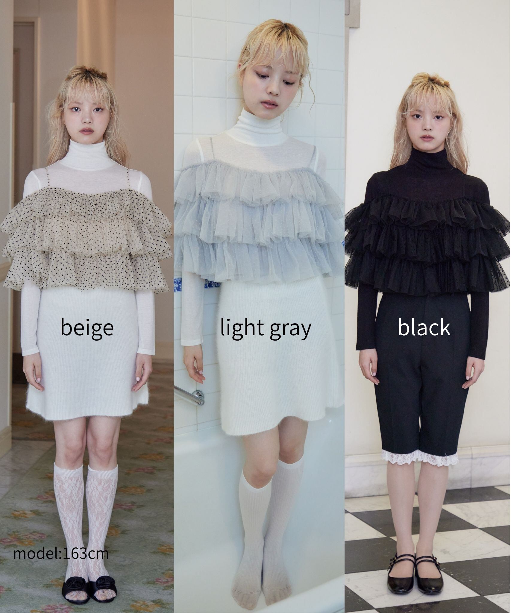 ドットチュールフリル&ニットトップスセット / Dot tulle ruffle & knit top set 【125047】