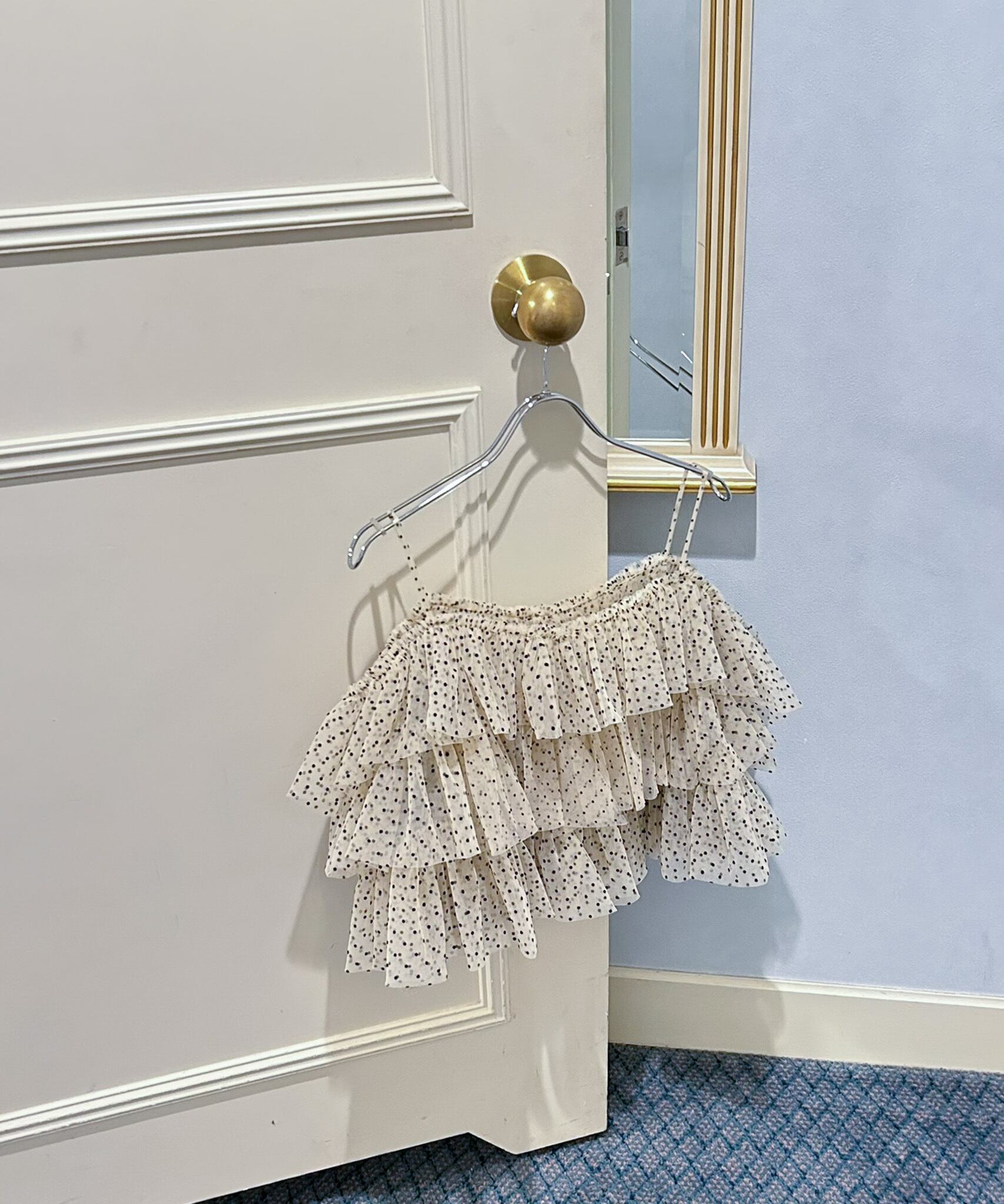 キャミソールは、ドットチュールをふんだんに使用し、ボリューミーに仕上げました。
