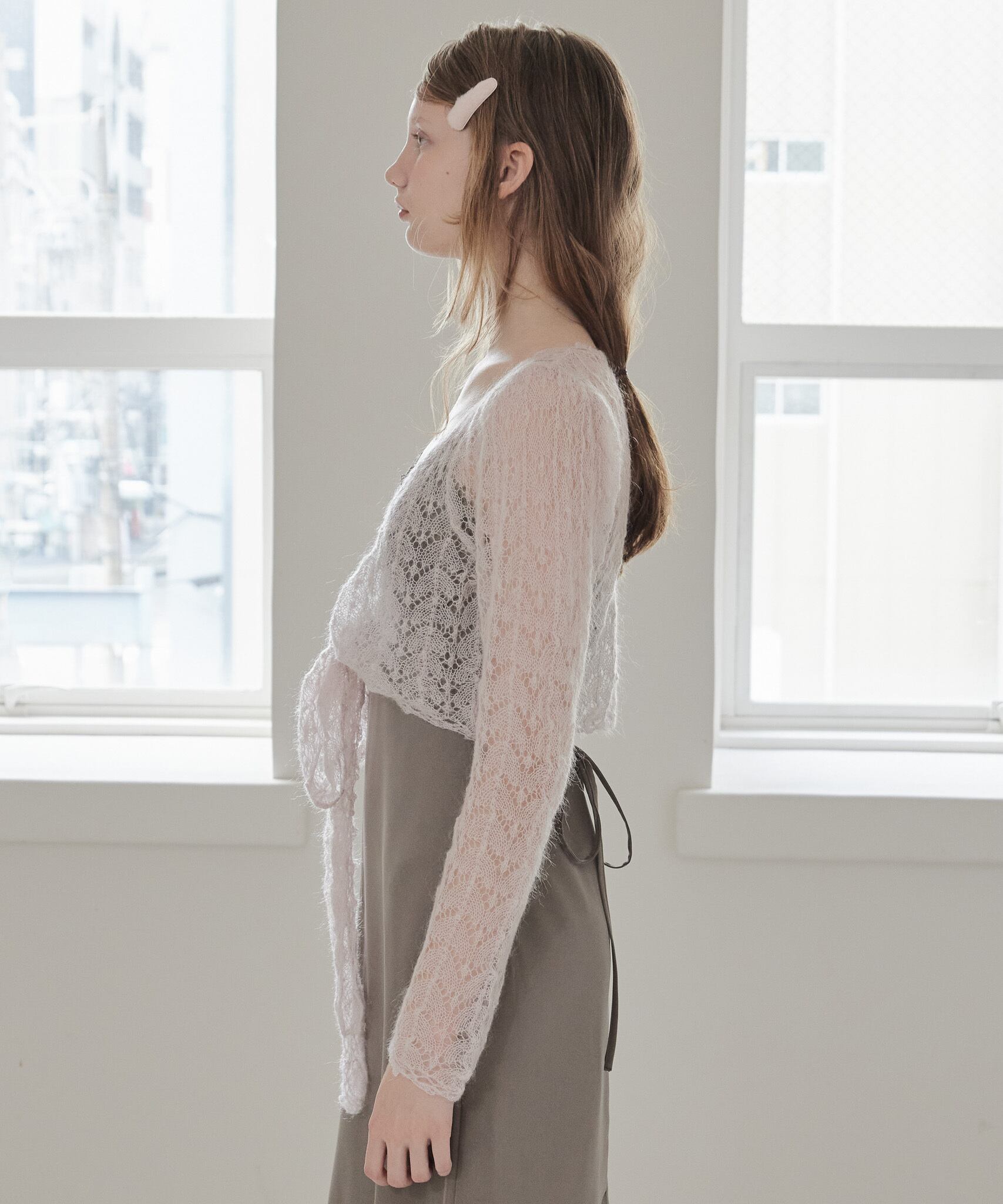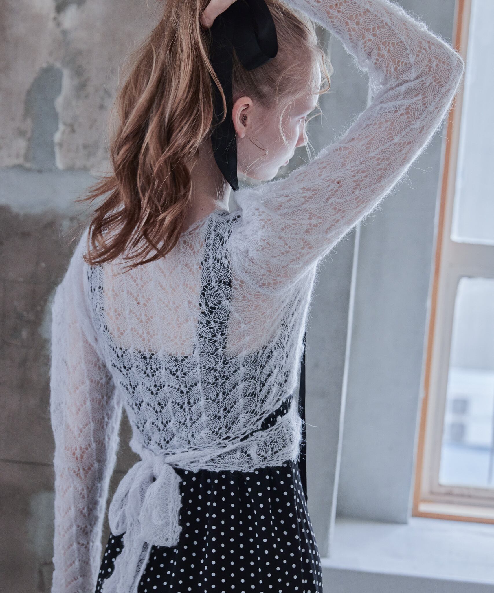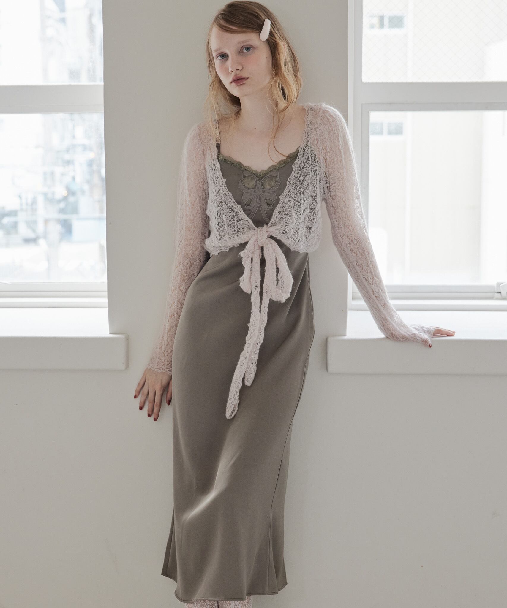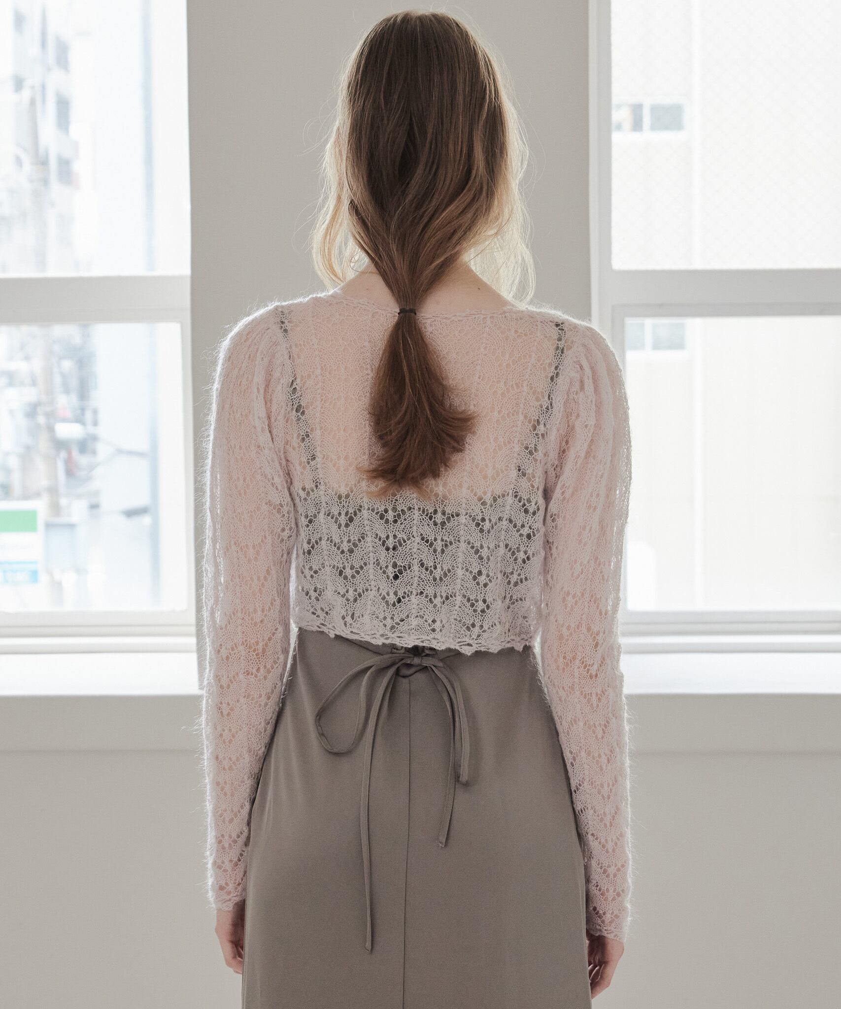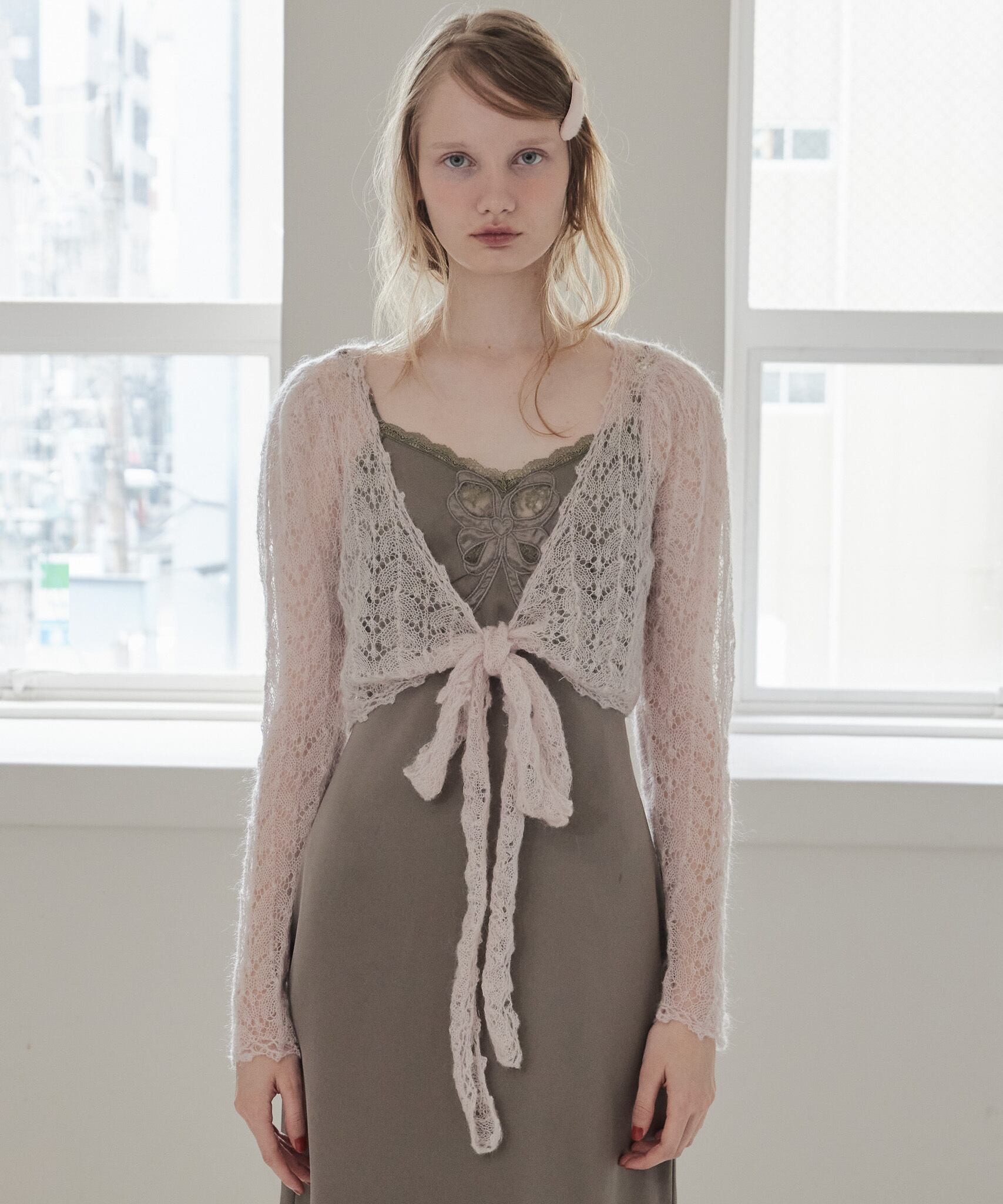モヘアクロシェリボンカーデ / Mohair crochet ribbon cardigan 【125049】