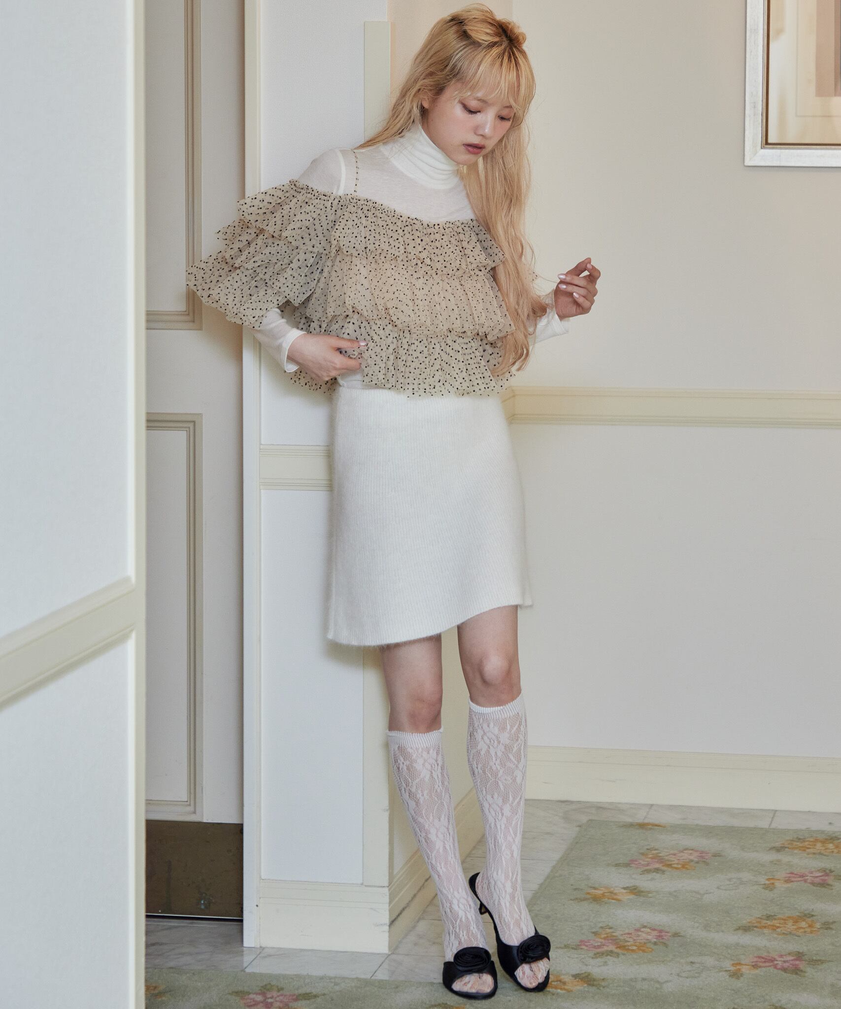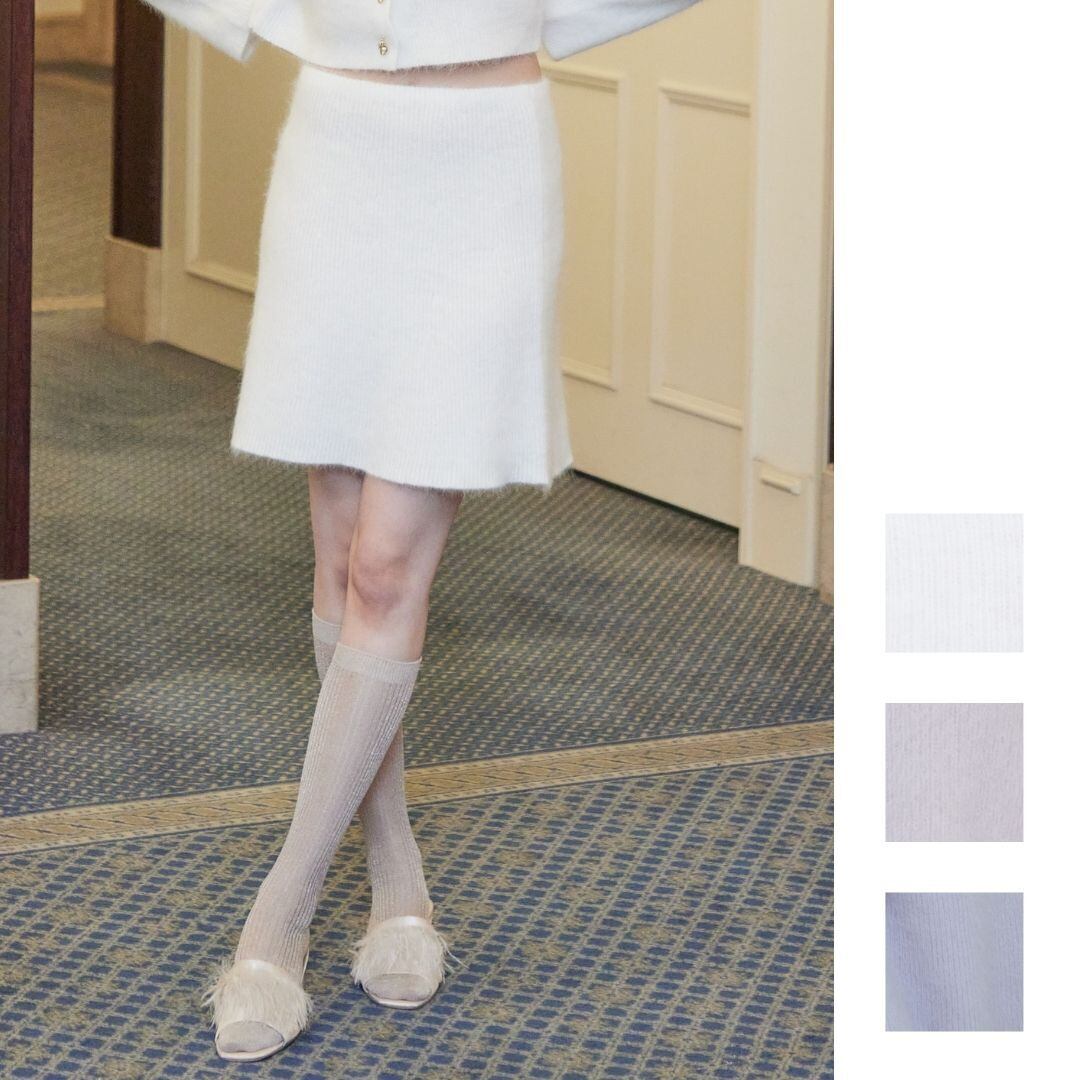 アンゴラでふんわりと仕上げたニットのミニスカート。