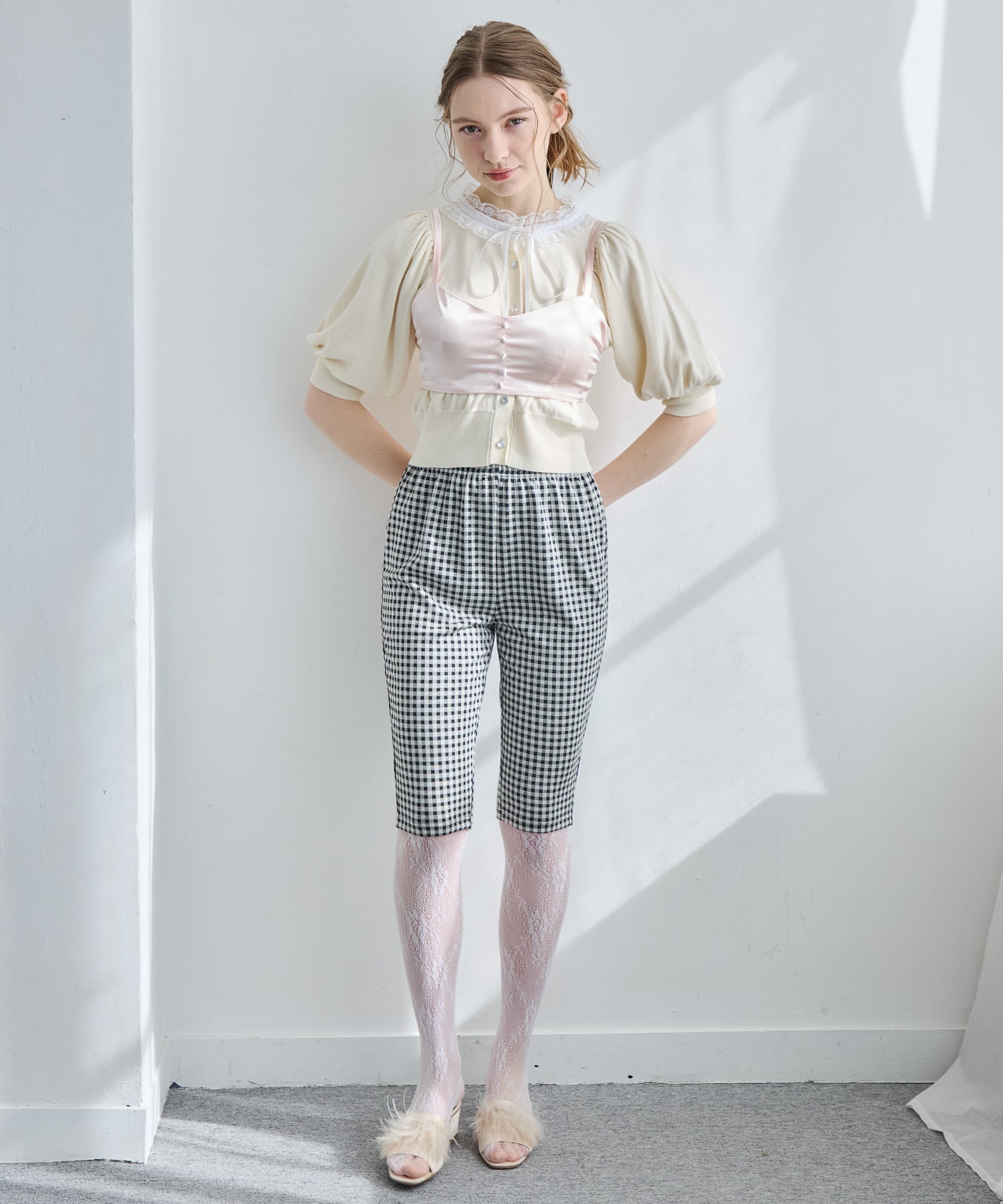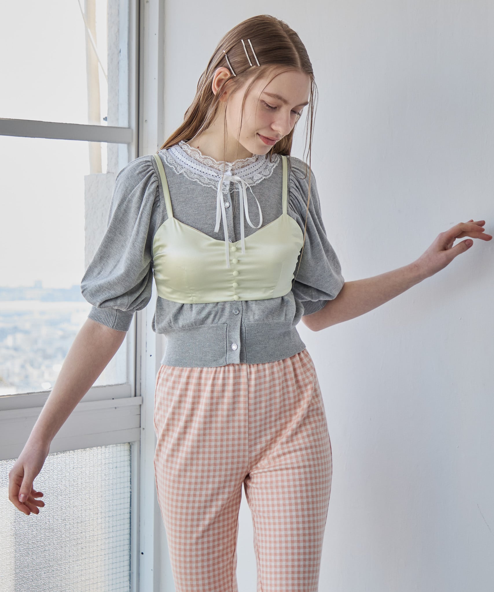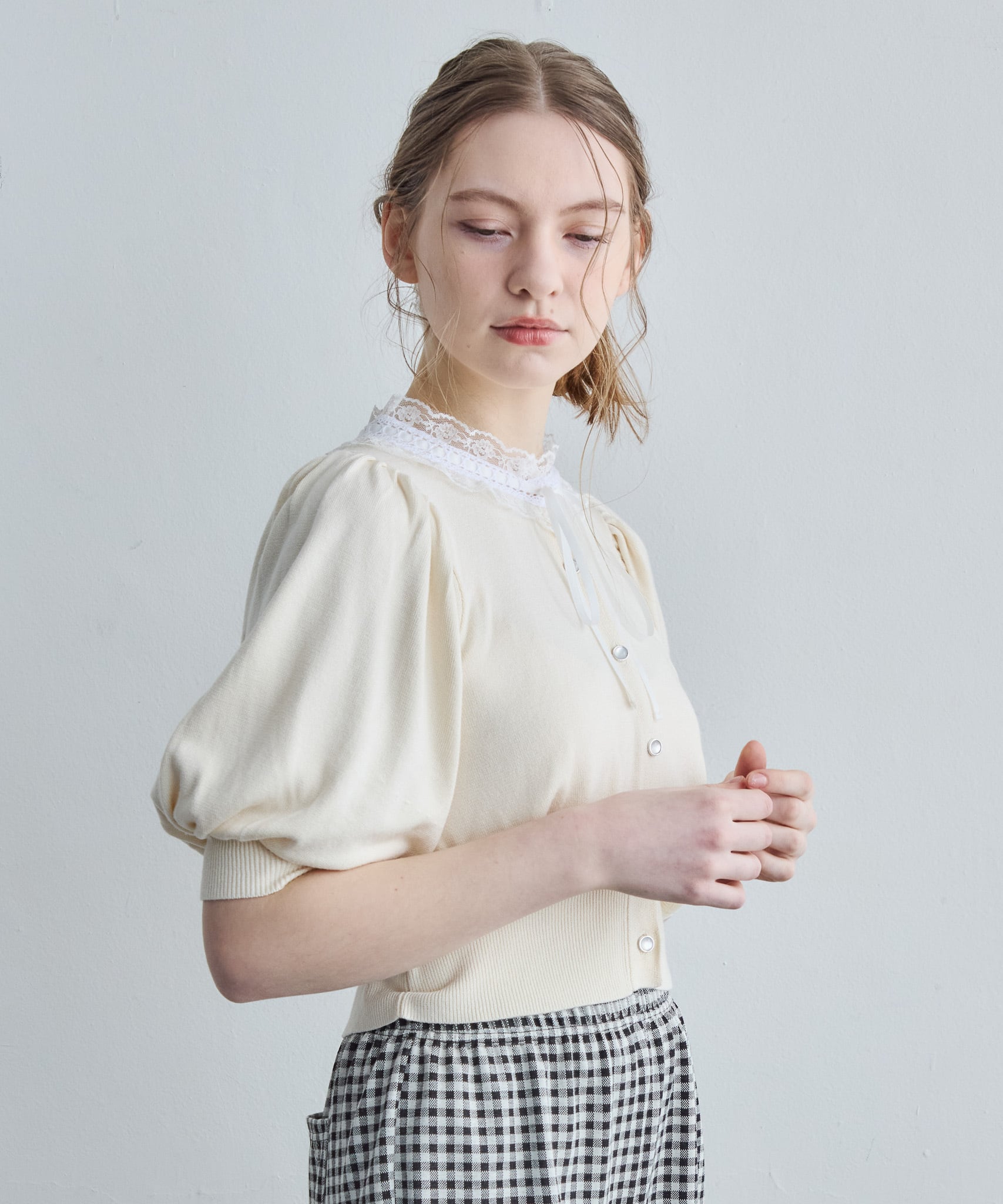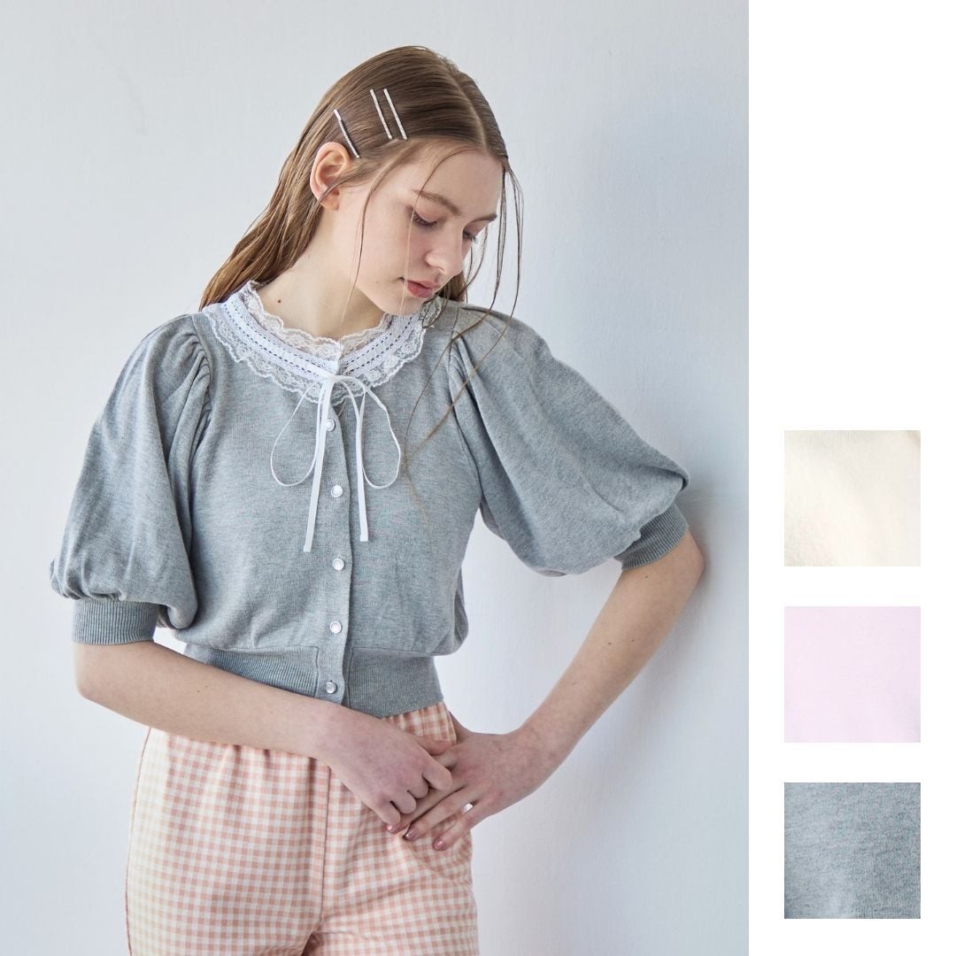 レースカラーパフスリーブカーディガン / Lace collar puff sleeve cardigan【126020】