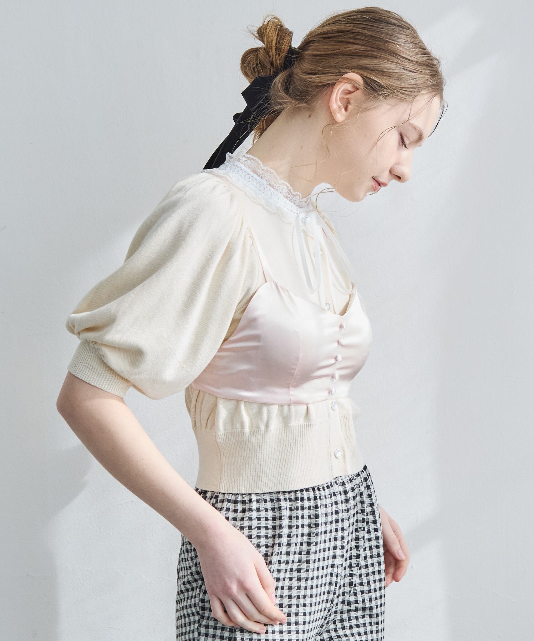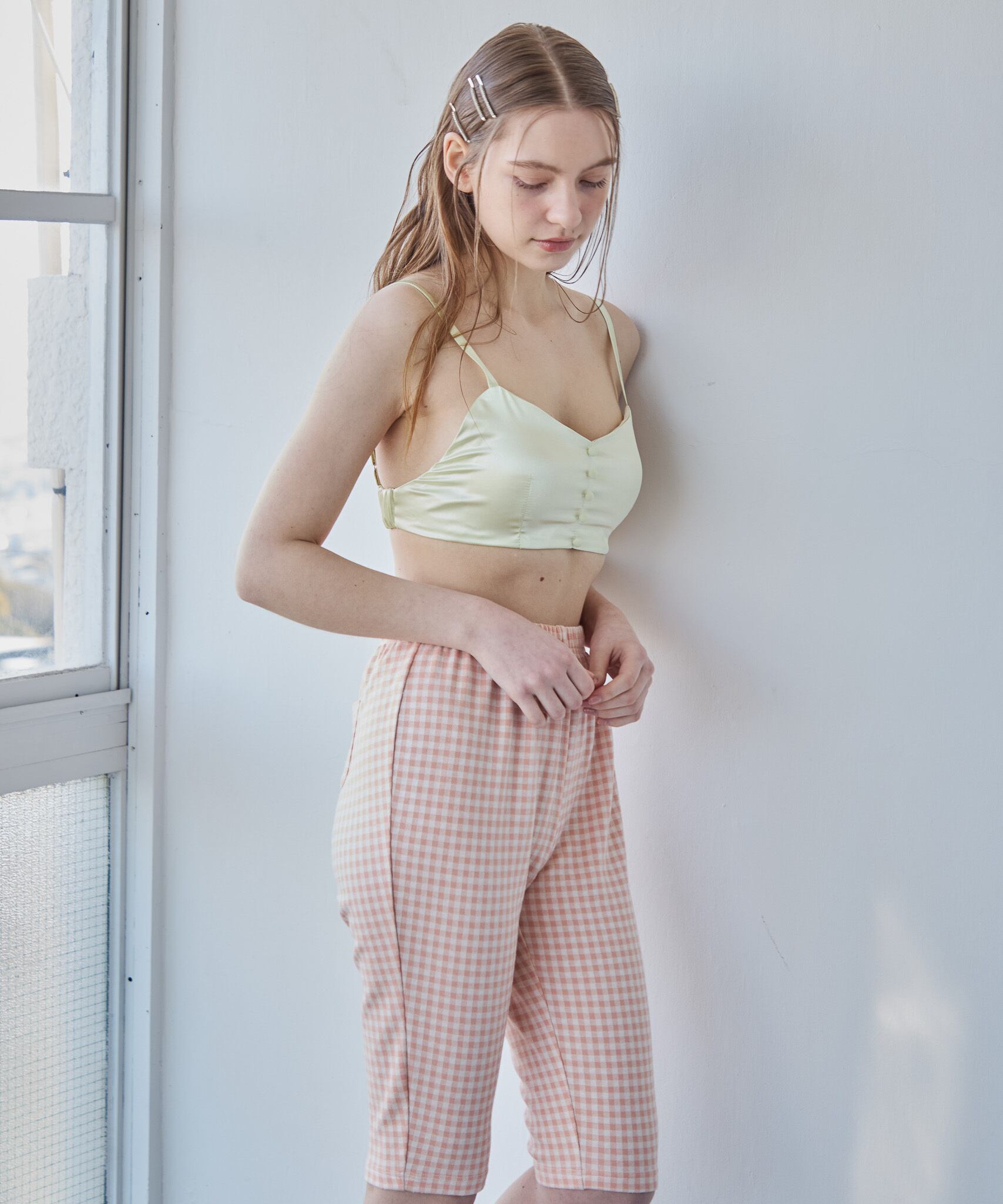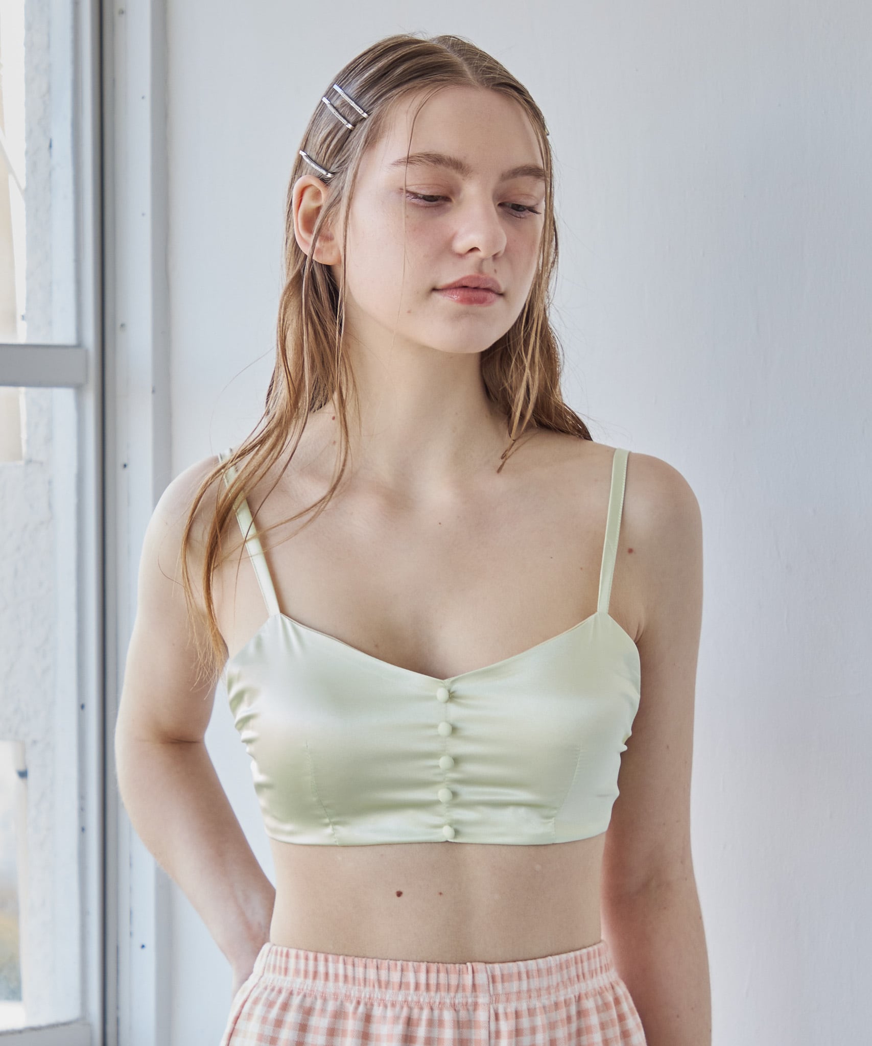 華奢なストラップとコンパクトなシルエットで、インナーとしても一枚着としても活躍。シャツやカーディガンのインに合わせるだけで、ヘルシーな抜け感のあるスタイリングが完成します。